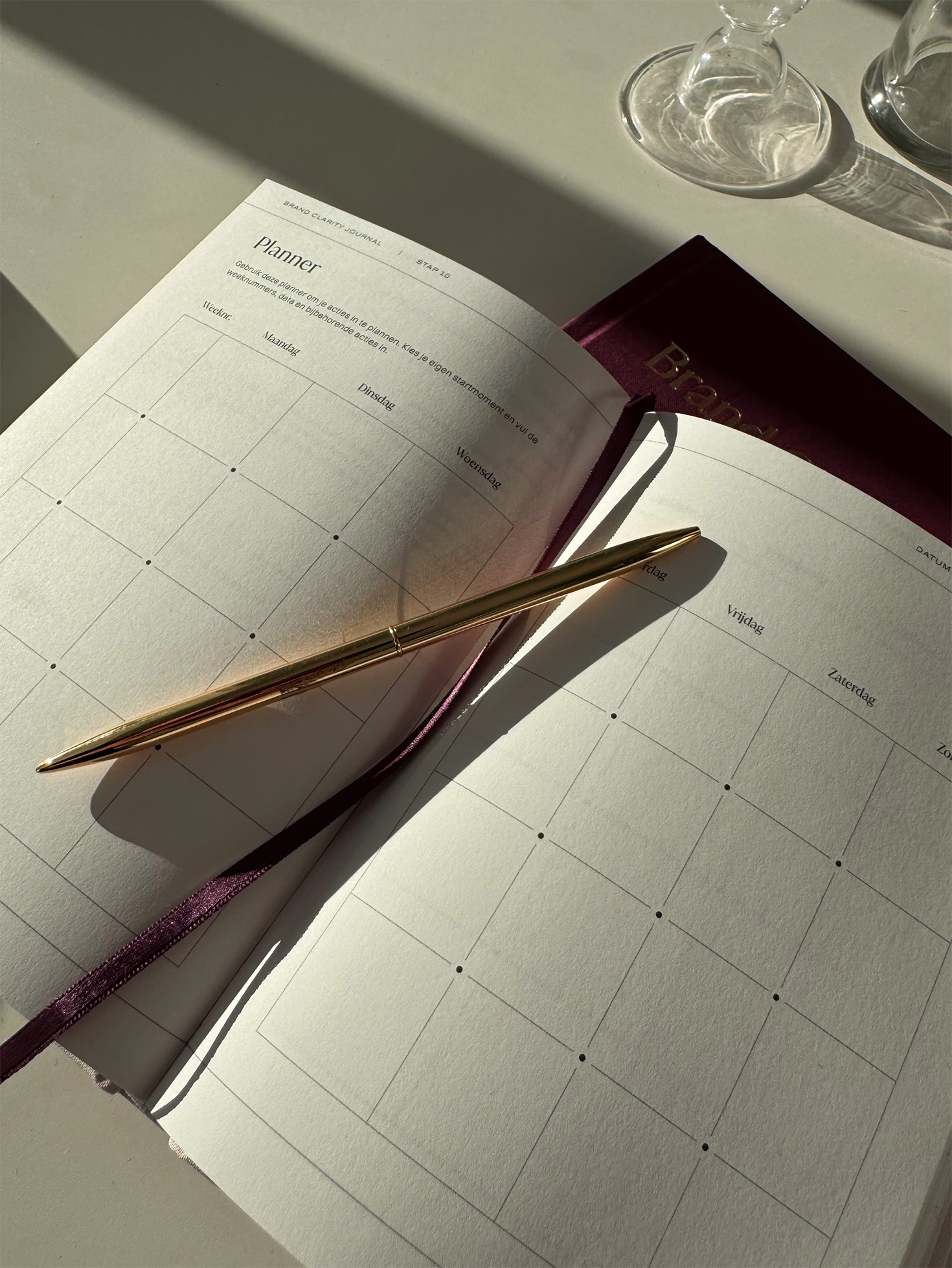 Dit journal is ontworpen als jouw offline branding tool. Met 160 pagina’s aan journal prompts, oefeningen en reflecties begeleid het je een jaar lang om bewust stil te staan bij je merk. Denk aan maand- en kwartaalreflecties, strategische vragen en creatieve opdrachten. Om zo een sterker merk te bouwen.